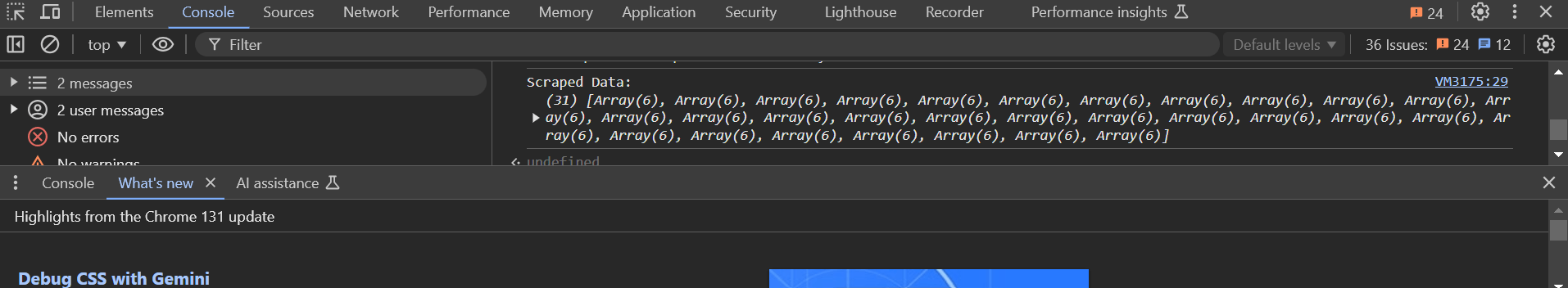 // Initialize an array to store scraped data