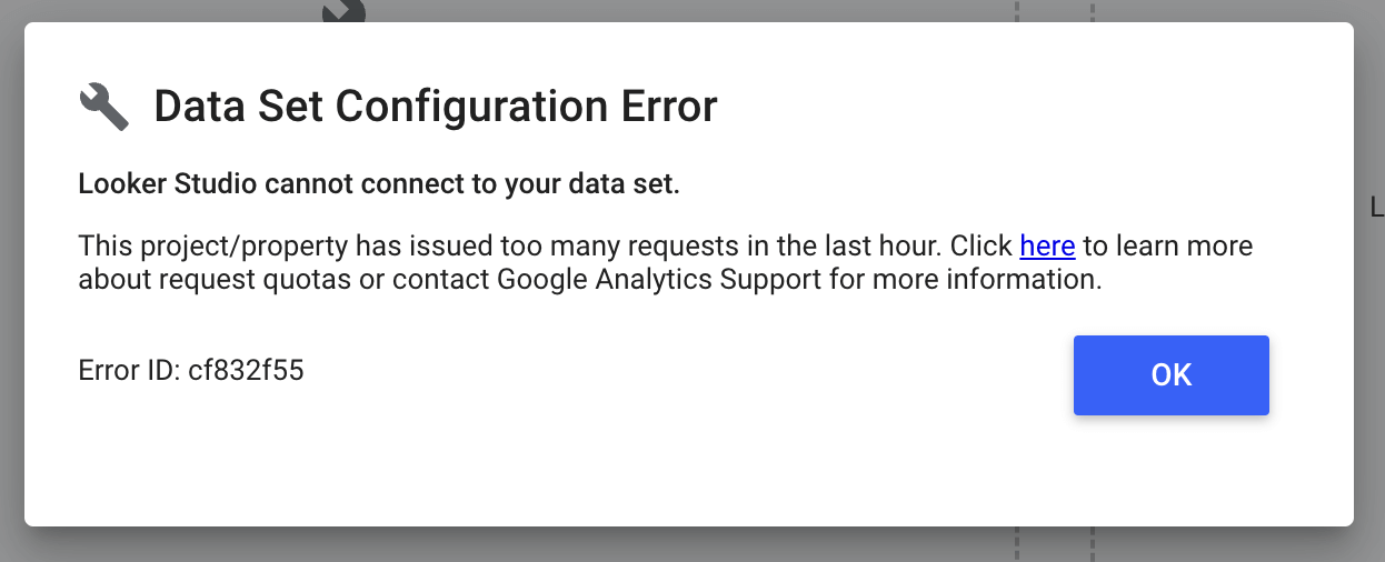 But this is good news at least! So you can try and find some of the common API requests which might be presenting you with the “Data Set Configuration” issue from Google Looker Studio.