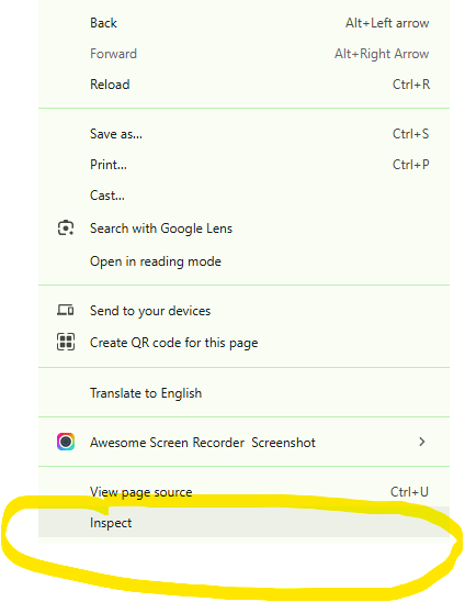 If you’re new to console scripts all you need to do is to right click when viewing your GA4 report and choose Inspect: