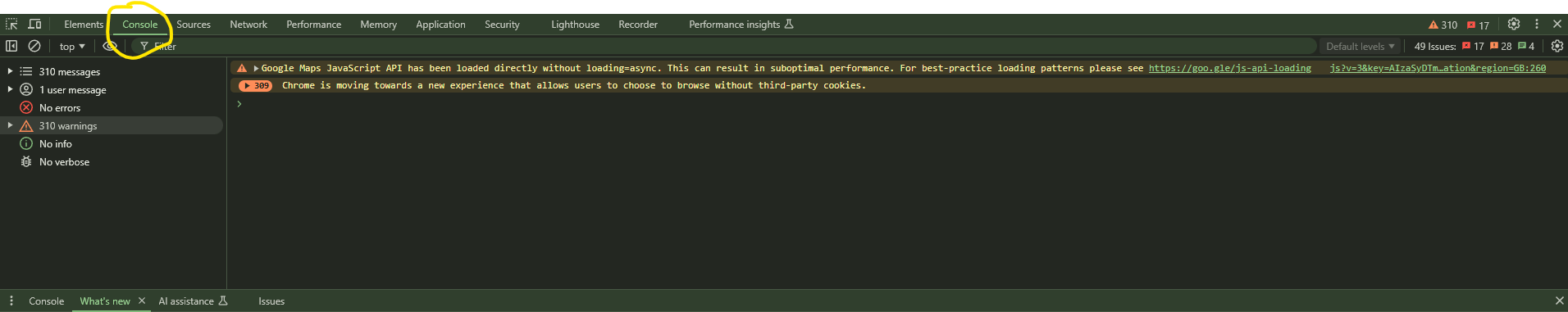 Click the Console tab: